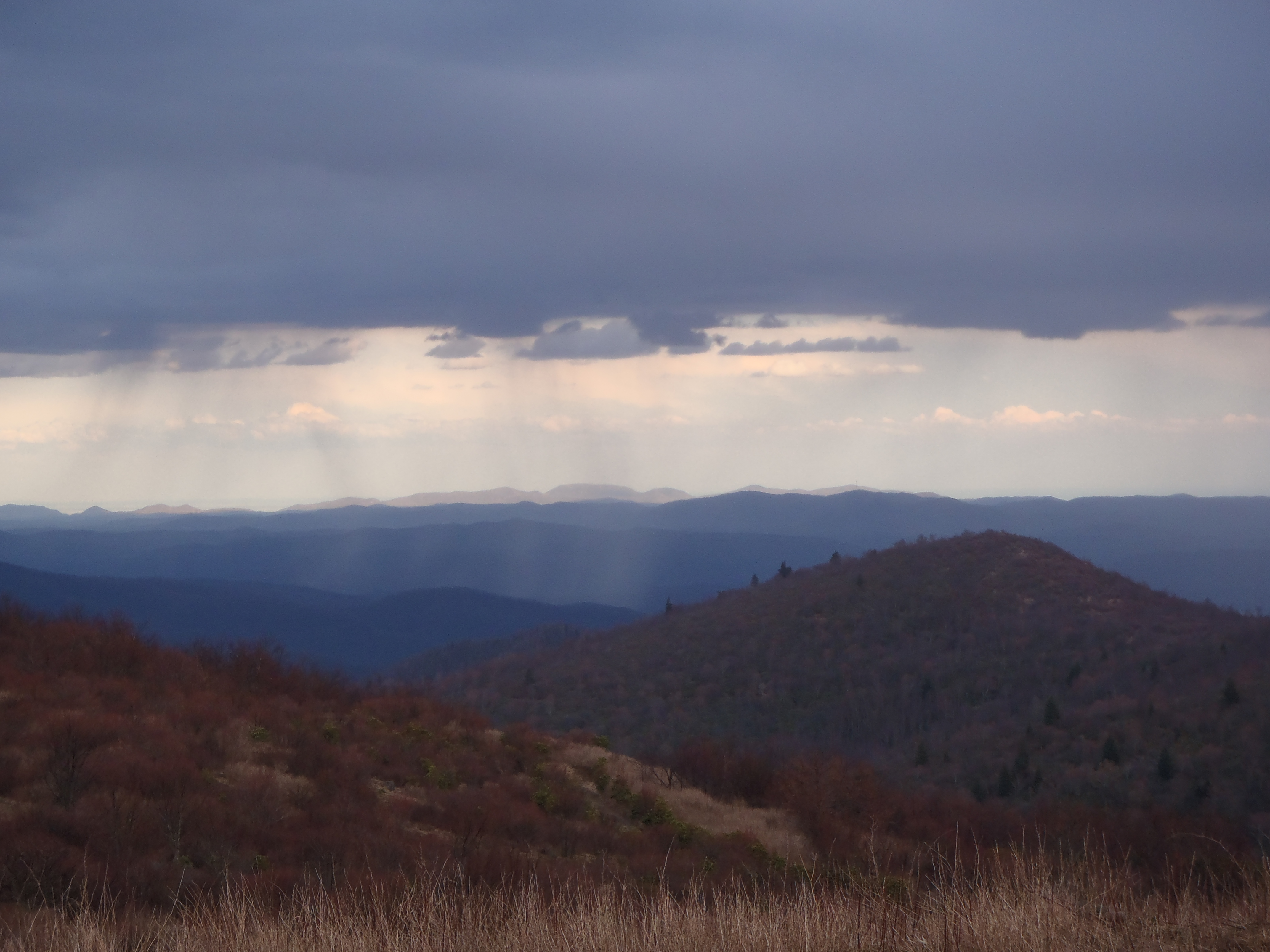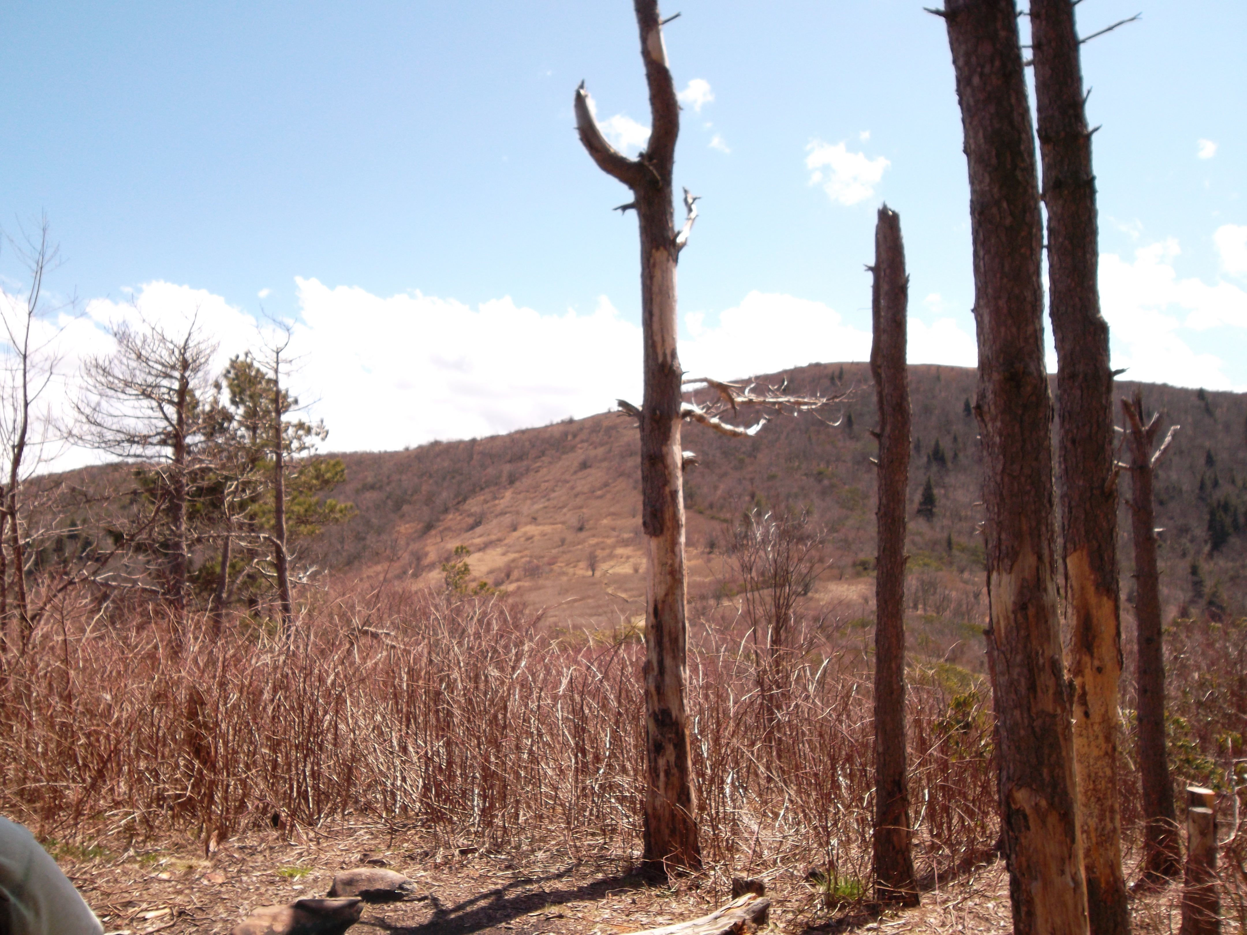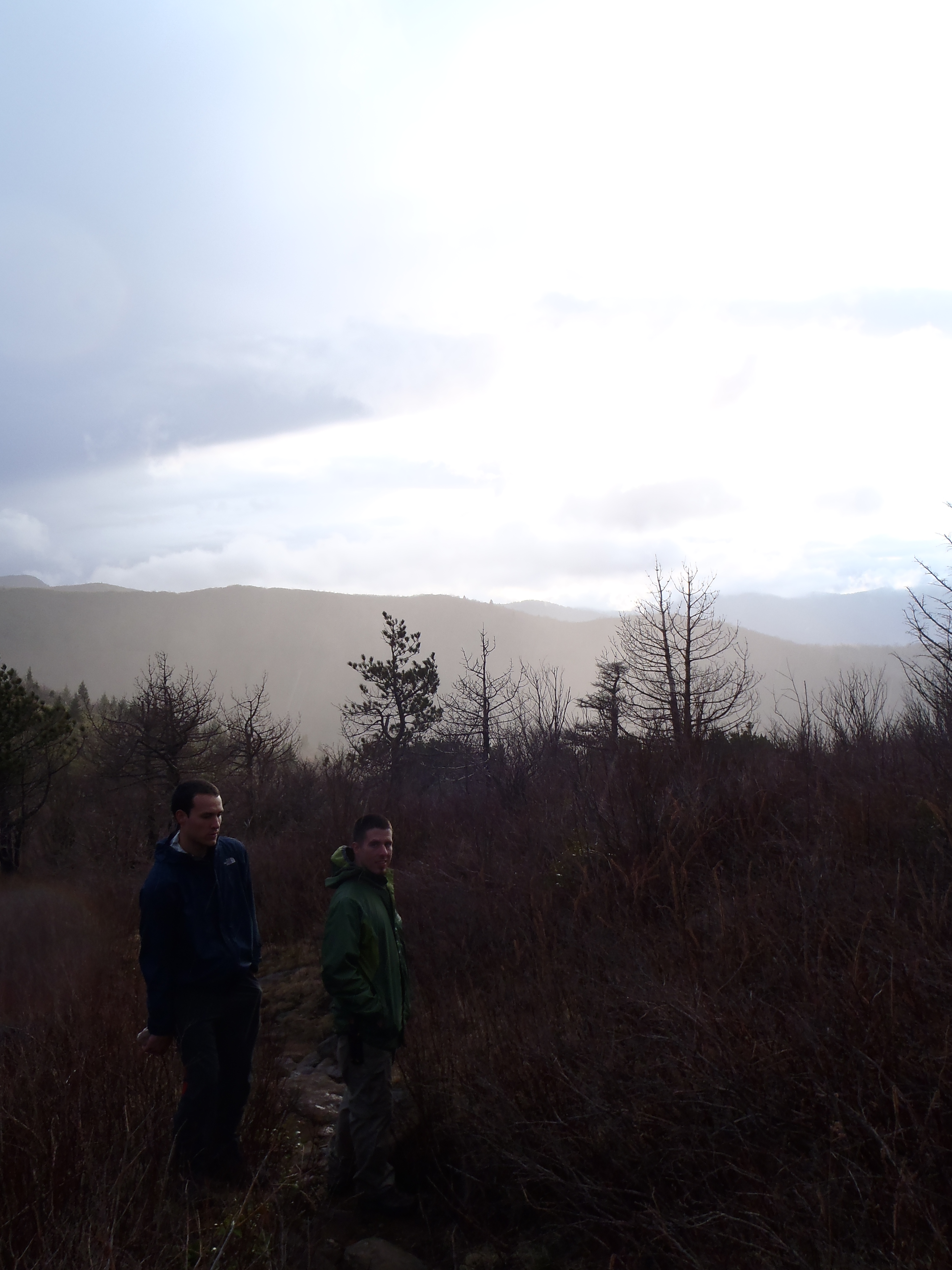 We cut through the trail, winding through trenches and cutting through the forest. Tall steps and boulders lined the path. As we climbed, the trees descended and were were then exposed to the wilderness. The weather was great, despite the predicted thunderstorms for the evening. The vegeta tion ranged from burly, wind torn trees on the lower elevations to stout, durable laurel on the higher sides. The clouds rolled on by at eye level as we kissed the summits, one at a time crossing the ridges.