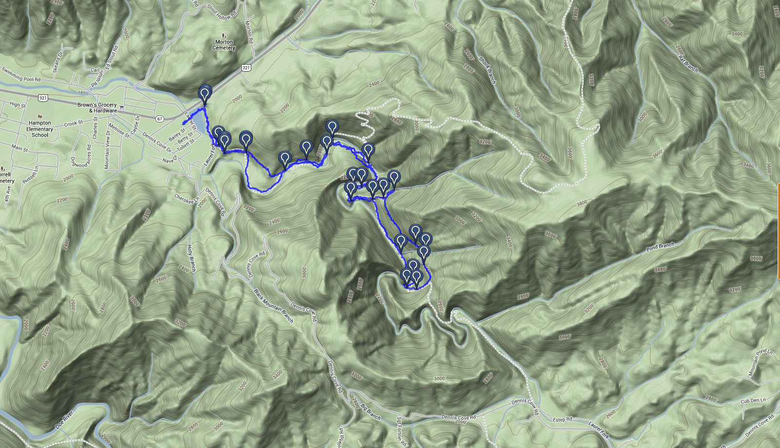 To access the trailhead, simply head towards hampton Tn, and turn onto U.S. 321 just down from McDonalds,  heading towards watauga lake. Follow U.S. 321 1.3 miles, and the trailhead parking will be on your right. Get there before 11, or parking could be very limited as this is a popular local destination.