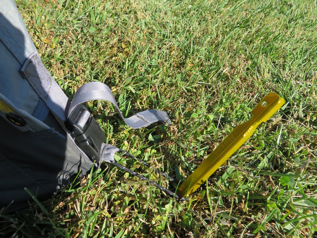 There are no guy-out points on the front of the tent. This creates a weak point where the tent can cave in a bit under high winds. As long as you use the Velcro straps to secure the poles, this isn’t much of a problem. If you forget this, however, you’ll find your tent bowing into dramatically during a hard storm, as I did when I forgot to secure one side.