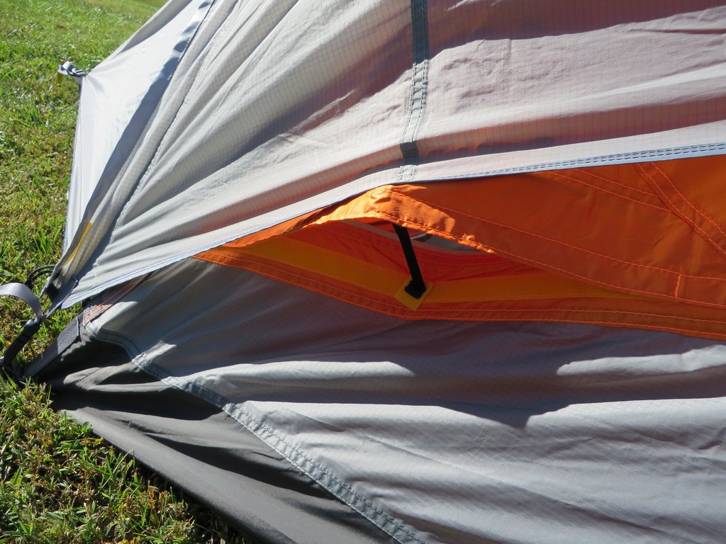 There are two vents in the tent, one low on the tent near the head, just above the bathtub floor, while another sits high in the tent above the head. This creates a nice flow of air that evacuates wet hot air, reducing condensation. They can be opened and closed from the inside of the tent, which is nice.