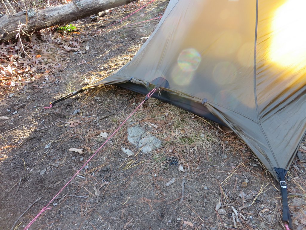 Mysteriously, there are no guy out points to stake out the long tube shaped side walls on the tent. This can give the tent some buffeting when the wind shifts and starts coming in from the side, adding to the noise.