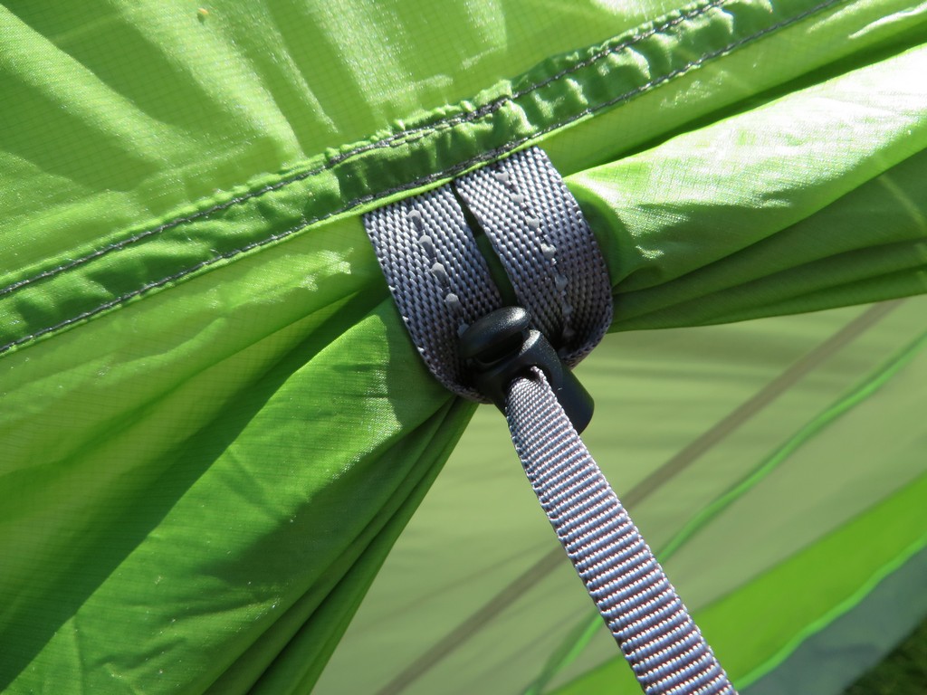 Stability is better than expected, largely due to the dual stake out points on the vestibule and rigid frame. Even without guying out the tent, the tent held in place with minimal movement and noise even on exposed peaks with generous winds (10-15 mph). A series of tensioners spaced about the corners of the tent and even on the vestibules allows a tight pitch in any condition.