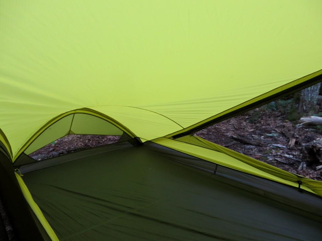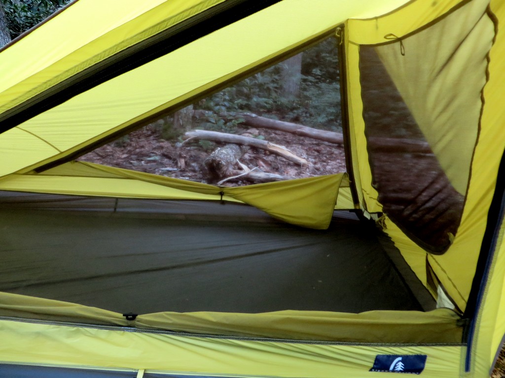 Livability with the Tensegrity 2 is fantastic. The beyond vertical walls, abnormally wide floor, and generously long floor plan provides ample shoulder and elbow room, saving marriages and bromances alike. I always had plenty of room to sprawl out during foul weather and roll about on sleepless nights without bumping into my companion. While inside, I always felt like I was living in a tiny palace instead of surviving in a plastic box. Moving in and out of the shelter proved to be some of the easiest I’ve ever experienced, due to the long drop doors that nearly matched the length of my body. I could simply swing my legs out, lace up and roll out. Accessing gear from inside is as simple as unzipping the third door, located just above the head of the tent. Reaching for gear during rainstorms provided easy access, while not getting in the way of my entry or exit when I was ready to leave. The large windows can be left open during most rain storms (always at least one door can be left open, even with sideways rain depending on the direction, and usually both) which infinitely enhances my enjoy-ability of being inside the tent during a storm.
