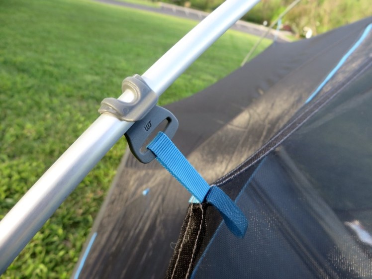 The basic set up of the tent is very easy. Simply stake out a few corners to keep it from blowing away, assemble the shock-corded poles, pop them in the unique metal clips on the tent canopy, and lift the mesh body to the poles and clip them in place. From there, Staking out the corners raises the foot up via the volumizing guy points, and the rain fly simply clips on, and has tensioners for adjusting the tautness. It’s fast, easy, and can be done in the rain or wind with little issue.