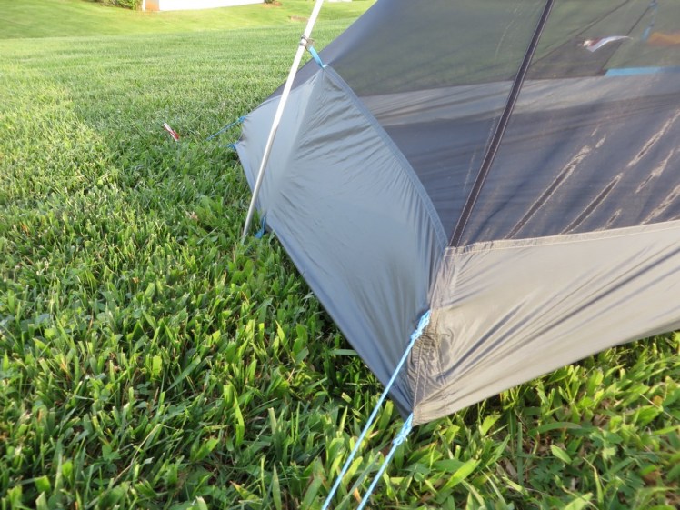 Another sacrifice for weight comes in the number of included tent stakes. It comes packed with 6, which is the number needed for a basic pitch and it’s generally enough. It includes some rather robust guy line too, but no tensioners or stakes to tie them out with. I’ve found that it’s adequate if connect the guy lines to the corners of the tent, doubling up on the included stakes, but an ideal pitch requires 4 more stakes placed farther from the tent, tying off to a tree or rock, or perhaps even fashioning your own stakes out of fallen sticks on the trail (it works in a pinch). It’s certainly not a deal breaker, but worth mentioning.
