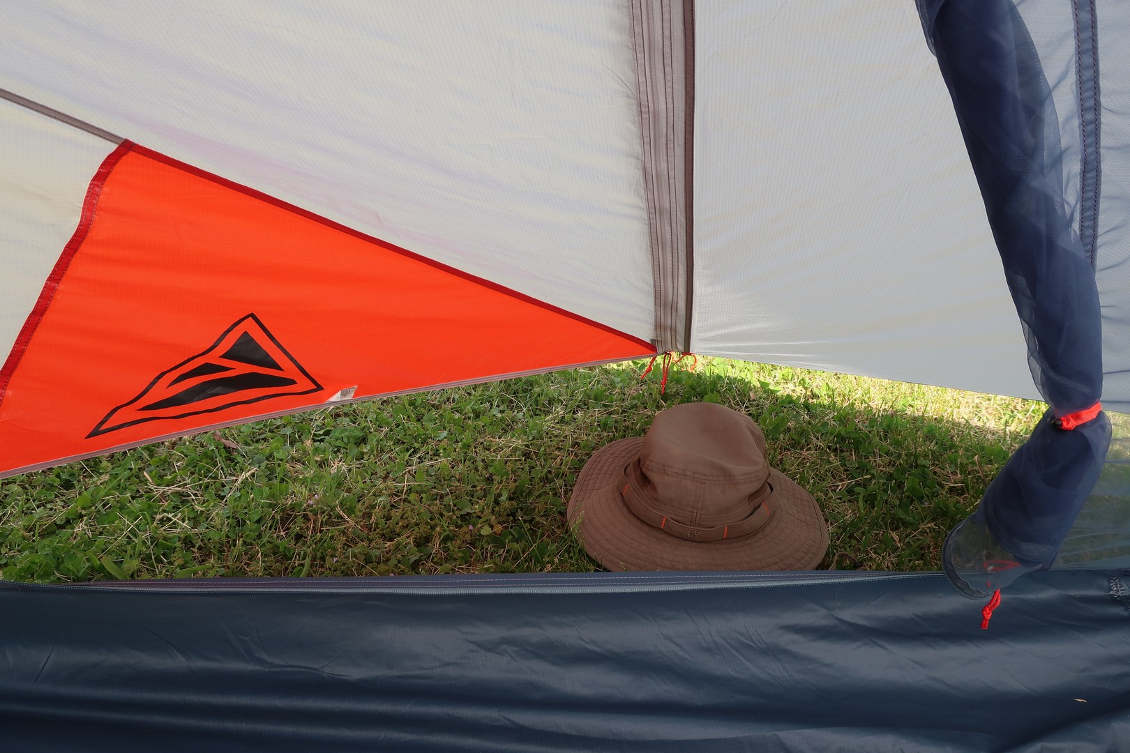 I loved having the front door, but only having a single vestibule is less than ideal. This moves all the gear to one side, which is fine when using it as a solo tent (which is a lovely experience). But, this is less than ideal when stacking two gear for two, with dual backpacks, two sets of boots and cookware all going onto one side. This basically delegates one camper to the “gear master” status, putting them at the beck and call of the other camper when they need something. The biggest issue being muddy boots, which no one wants to drag through the tent from the side vestibule to the front door when the second camper needs out. It is possible to store all the extra gear outside the tent under a pack cover or something, but this isn’t a flawless scenario either. The All in 3 does have two vestibules, but has a weight penalty of course, putting it at just under 5 lbs.