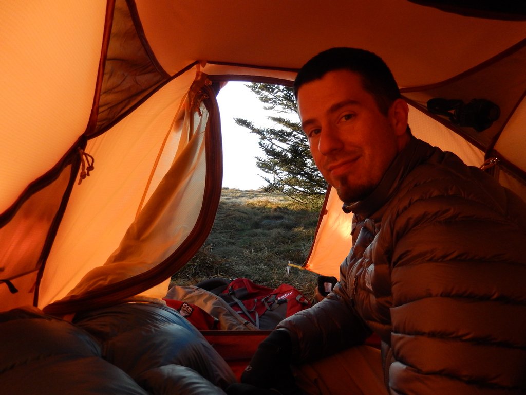 Consider the wind direction. You don’t necessarily want to camp on the side of the mountain that is facing into the wind. The wind will hit harder, longer, and likely prevent you from sleeping at night. Sleeping just off the peak, even with a small knee high windbreak can make all the difference. Also keep in mind that wind direction can and will change. If the wind shifts, will you suddenly be in a bad situation? Think it through before setting up camp.