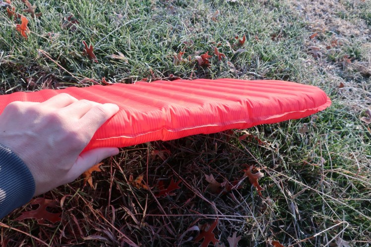 Soft yet supportive structuring doesn’t mean much if you’re cold and can’t sleep anyway. Thankfully, that isn’t a problem here. The R-value of 3.8 (a measure of how well a material insulates) promises a warm experience down to about 15 degrees F, and that it delivers. While I haven’t tested below 15 degrees yet, I’m yet to feel any cold seep through the pad at anything above this level and I believe based on its performance so far it should suffice to about 10 degrees. It’s definitely a warm pad, but I never found it overly hot. It provides a rather excellent next to skin warmth, although Thermarest’s own Prolite seems to feel a little warmer, probably due to the small separation of body and the foam core due to the air channels.