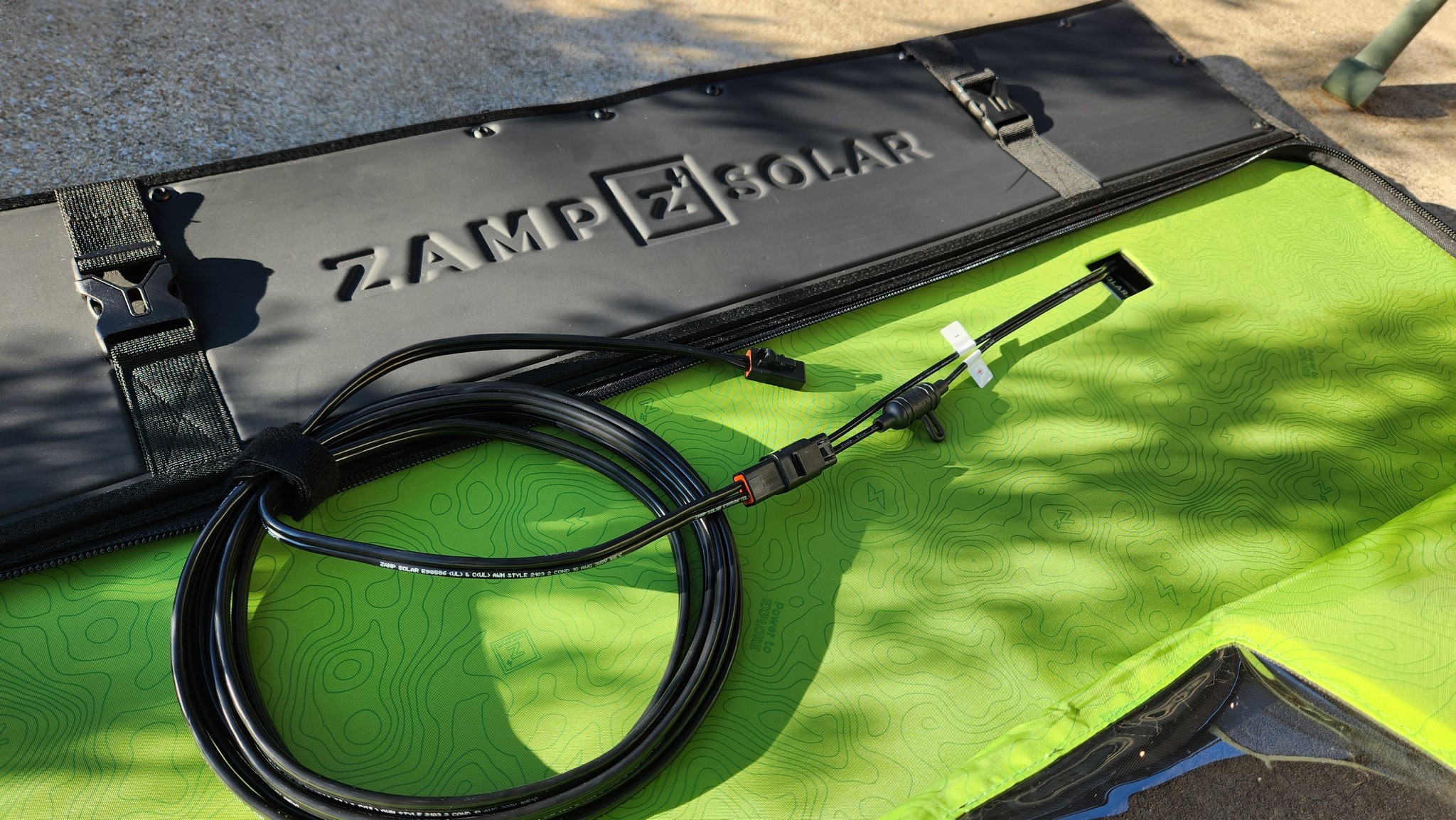 When I began using the Obsidian series I was instantly impressed with the build quality. The ballistic nylon body is stiff, rugged, and feels like it is built to survive decades of use. It is stiff with just a little bit of flex, allowing it to hold its shape but also flex to sit level on imperfect surfaces. The panel itself is rugged and has resisted scratches and cracks just fine, while the body has held up to use on dirt, grass, rock and concrete without showing any unusual signs of wear. The carry handle is burly, with a thick internal nylon band sleeved with a nylon pipe acting as the grip. The zipper and pull is fairly rugged and slides easily with no hangs so far. Seams and rivets have held up great. The clips that lock the panel it into a suitcase like carry configuration also feel premium and haven’t faded or become brittle while being left in the sun. The cables and adapters felt higher quality than most, with a thick, rubbery casing that still flexed easily without retaining curves or kinks when rolling the up or packing them away for long periods of time. It’s extremely well built, which gives me confidence, especially given the included 25 year output warranty for the panel itself.