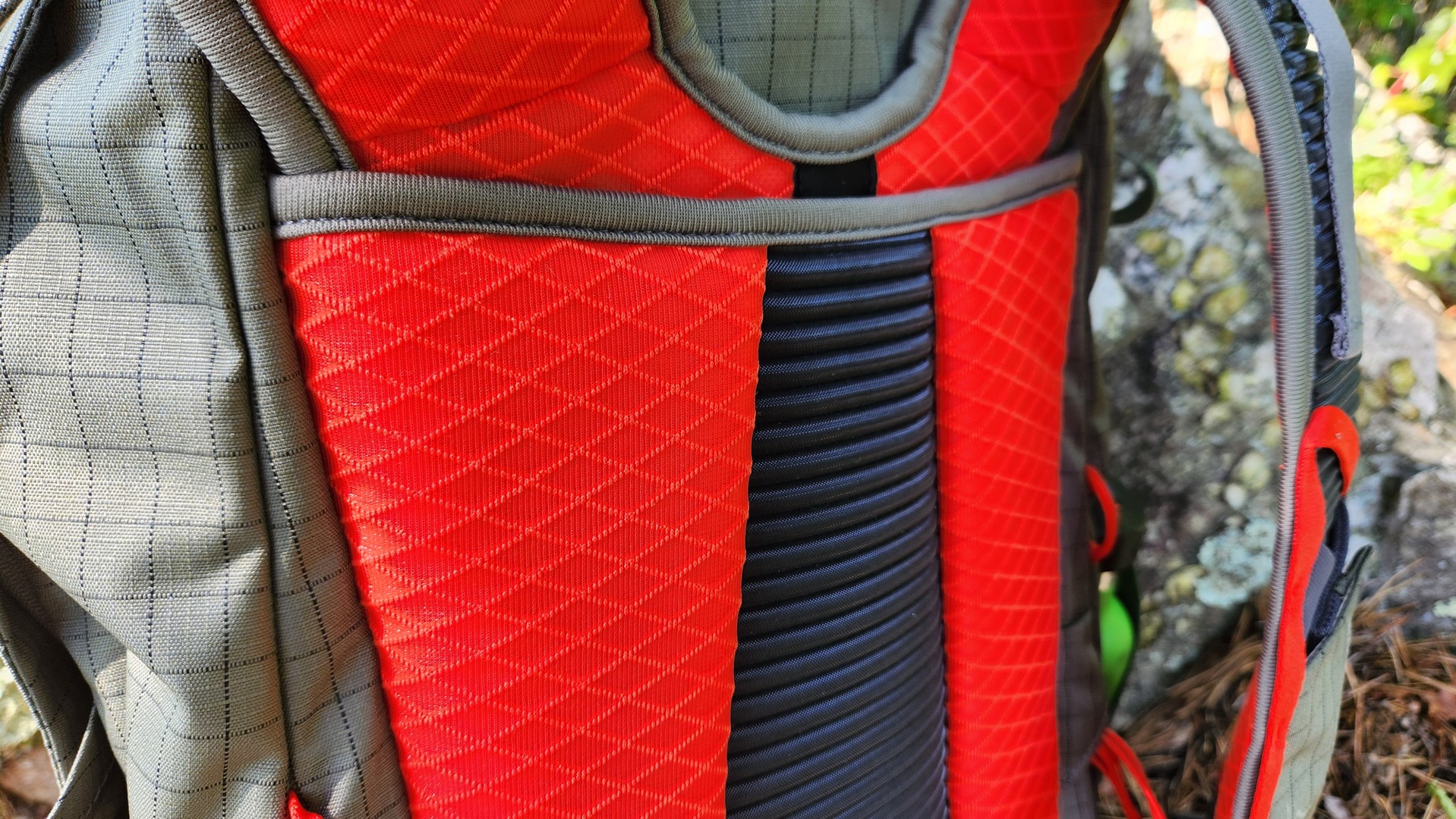 The back padding is laid out in a peculiar way. While the padding is extremely comfortable and the ribs do evaporate and dry quickly, the layout is actually such that it traps hot/humid air and perspiration in the triangle like pocket the ribs create. The ribs create trapped pockets of air, while the padding on each side essentially insulates and creates a bit of a hot/sweaty spot along the black panel that persists as long as the pack is worn on warmer days. It does dry quickly once the pack is removed, but ventilation in reality is fairly limited and there isn’t much of a way for fresh air to reach that center section. Still, I wouldn’t say it’s bad in this aspect, in fact it is fairly average when it comes to ventilation. The engineers were onto something with the design, it just needs some tweaks.