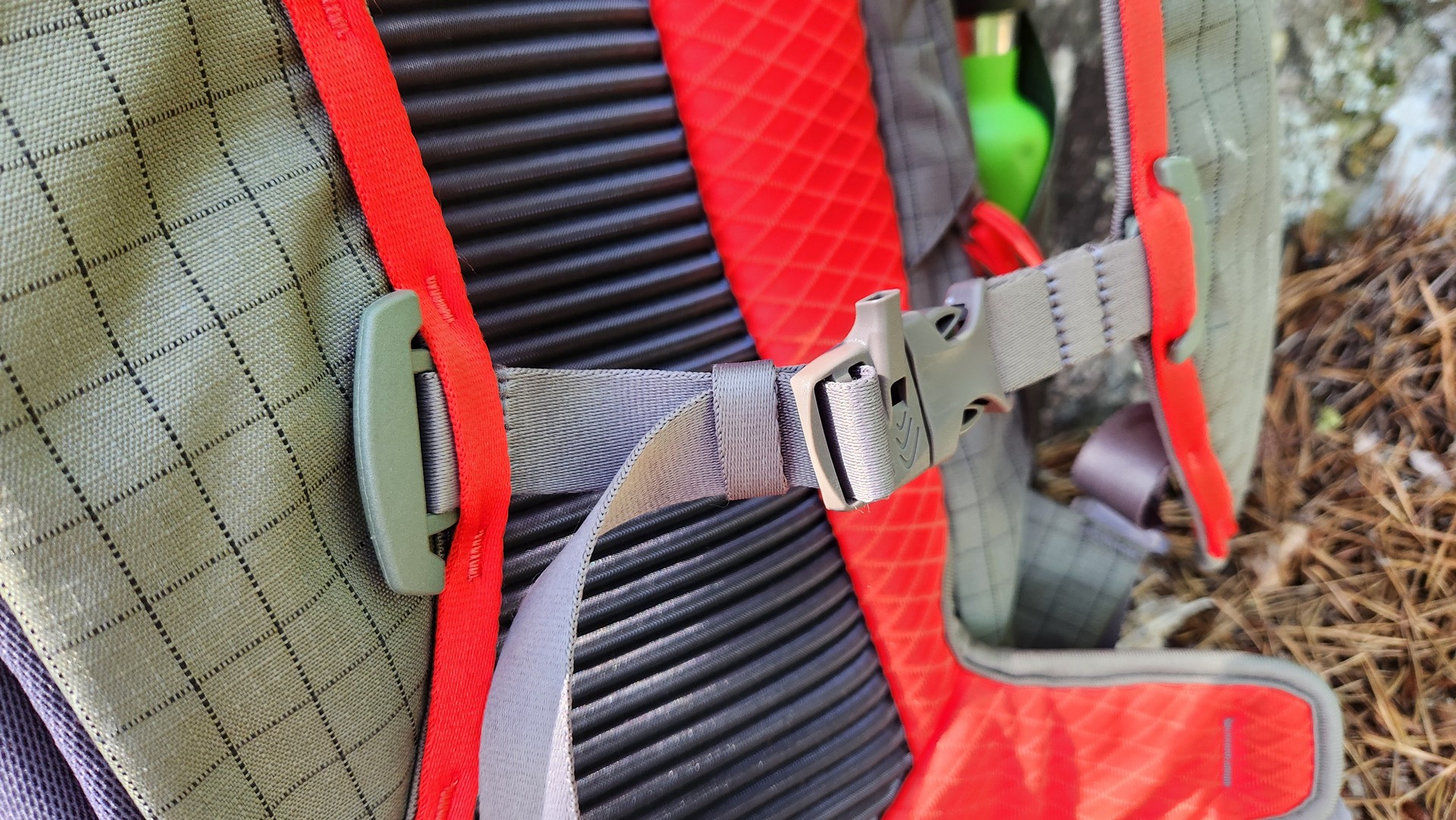 The chest straps are surprisingly slick to the touch, and actually create a slipping problem with the chest adjustments. I found myself constantly needing to readjust the chest straps to prevent the should straps from sinking into my arm pits as the straps slowly slid through the friction loops, which can create pressure points and friction. It never caused me any pain or discomfort, but I was never able to keep the pack adjusted just the way I preferred. This can be mitigated by waxing the chest straps or by applying something like a close pin to prevent this from moving, but neither is an ideal solution. I would like to see this strap replaced with something grippier, or perhaps the plastic adjusters themselves could be replaced with something with less tolerance and more friction.