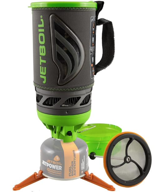 Combining Jetboils blisteringly fast boil times with the comfort and convenience of a java press, the Flash Java Kit is sure to make many a campers happy. It can boil water in as little at 100 seconds, includes a built in cozy, and the included coffee press stores conveniently inside, for a kit that packs up small and only weighs 13.1 ounces. It saves on fuel as well, which is always a bonus. Affiliate Link.