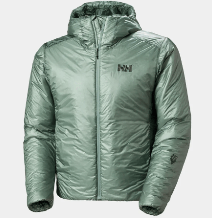 Meant for alpine adventuring, the Odin Everdown from Helly Hansen combines the warmth and lightweight nature of down, with cutting edge baffle free layering to eliminate cold spots. This combines to create one of the lightest, warmest jackets ever created. Weighing just 350 grams, or roughly 12 ounces, it still manages to shrug off below freezing temperatures, making an excellent mid-layer as part of an alpine kit. Link.