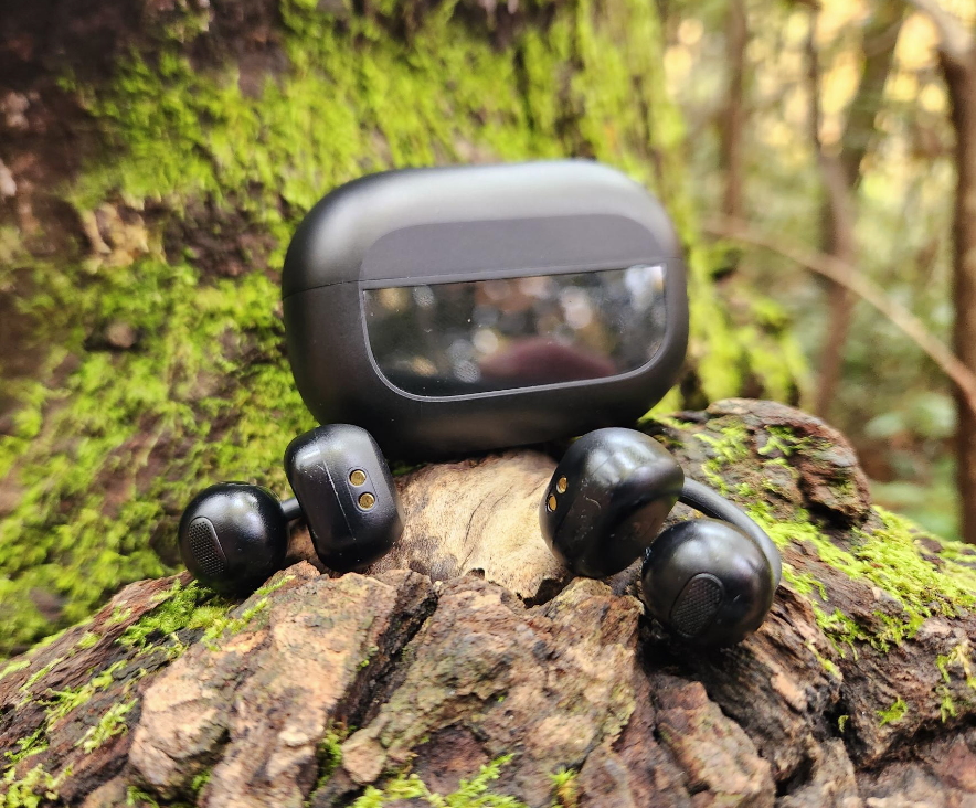 Open air headphones are gaining in popularity as they provide comfort, good sound quality, and safety as they let you hear around you. The EarRing from Tozo provide all that, with a unique but not bespoke mounting method. These dangle from your ears like earrings, which is surprisingly comfortable. I was skeptical at first, but these sold me once I got to test them. The sound is good, the price is great, and they completely avoid interfering with glasses, helmets and headbands. Affiliate Link.