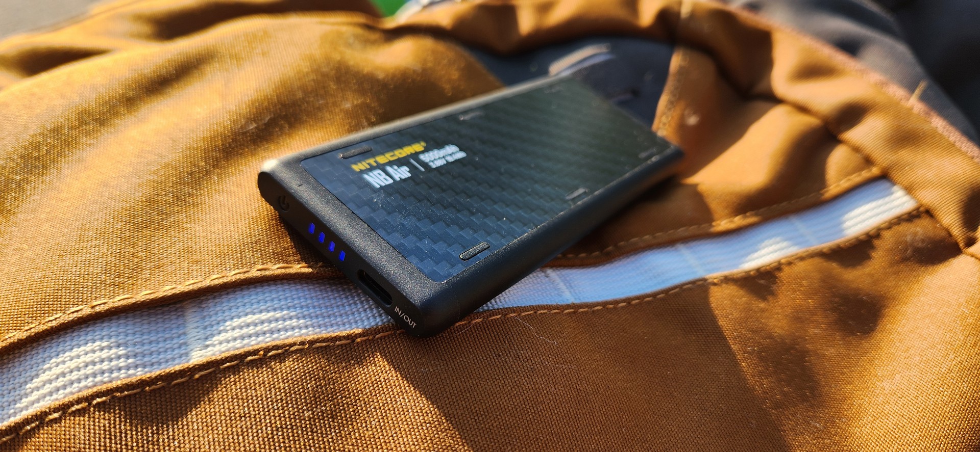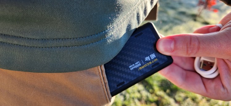 The beauty of the NB Air is it’s simplicity, and the length of this review will reflect that. It’s an incredibly thin battery bank that packs an impressive 5000 mAh battery, meaning it will easily slide and disappear into a front pocket, yet still somehow manage to charge small devices with no issue. The design is smooth and elegant with rounded edges and barely tactile seams, allowing it to slide into nooks and crannies of pants or backpacks effortlessly. It even fits inside a front shirt pocket. I’ve found I can pack it basically anywhere without really feeling the weight or the size, making it viable for hiking, backpacking, biking, and even jogging with the right kit.