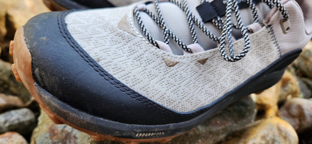 Hiking in the N45 has honestly been a real treat. These are hands down some of the most comfortable shoes I’ve ever worn, especially trail shoes. The body is soft, conforming, and has a little bit of a neoprene like stretch/hug to it. It provides a gentle pressure across the foot that feels like a warm hug. With only two days of light break in, I was able to do 8 miles of trail with no issues at all. It felt like I had been wearing them for months. I don’t actually recommend doing this, but hey, it was for science. Mile after mile on the trail I’ve found the EnduroFoam midsole to take a beating, happily absorbing the impact of rock, roots, dirt and pavement. I found it to be quite supportive and yet a touch cushy, thanks to the fast rebounding foam. I was very impressed.