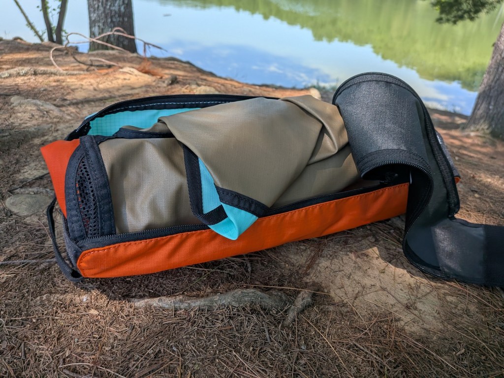 Setup is quite easy. The poles snap into place with no guesswork, and given it is all shock corded it can’t really be put together wrong. The poles slide into the fabric pockets for the easy quite easily aside from the final pole (I recommend doing the legs/base side first) which requires just a touch of strength just to flex the aluminum pole into position. This isn’t difficult so really anyone should be able to do it. Packing it up is just as simple. Each process takes maybe a minute and a half, with packing it up taking maybe two minutes if it is going back into the carry pouch.