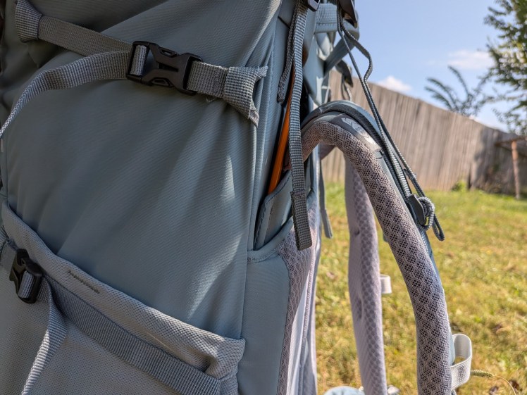 While the pack is overall quick comfortable as a whole, I couldn’t quite get on with the chest straps. I felt like they were narrow, lacking padding, a put too much pressure on my chest. Even after adjusting every aspect of the fit I found them to put more pressure on me than I preferred. I also couldn’t adjust the torso quite a high up as I would have liked. While I wouldn’t say it was uncomfortable, the sensation of the stiff narrow pad took me some getting used to. I did get used to it though. I would prefer pads that were wider and longer to better distribute the weight across my chest with heavier loads. With lighter loads I didn’t really notice it.