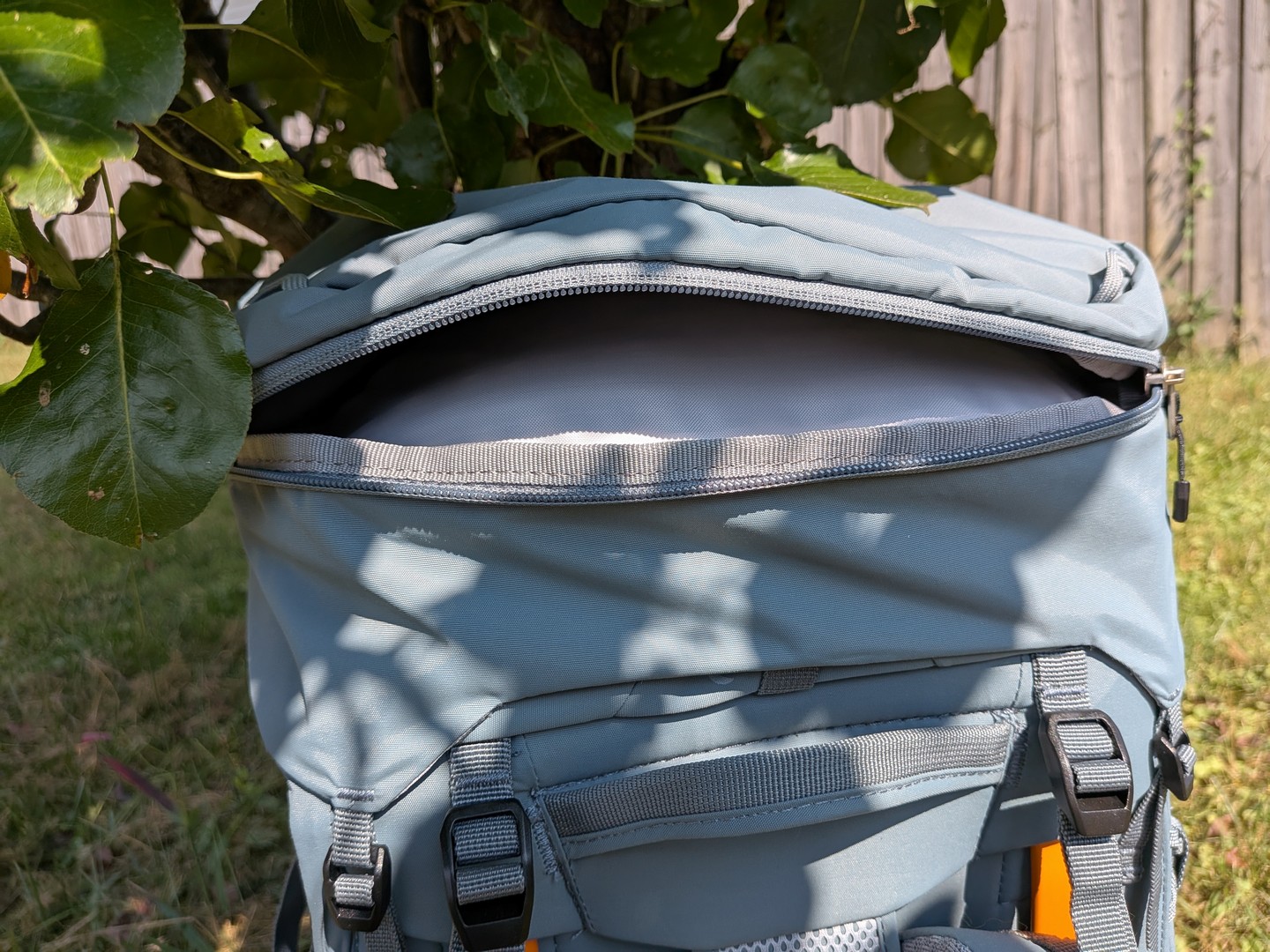 The zipper that runs along the horizon of the lid is on the chatty side while on the trail. The zipper tends to bounce up against its own material, making a little jingling sound as I walked. To make situation worse, it tended to sit just to the side of my right ear, which made it hard to ignore. I plan to chop the zipper off and replace it with a piece of silent paracord. It ‘s light, makes no noise and an easy fix that I do to a lot of packs.