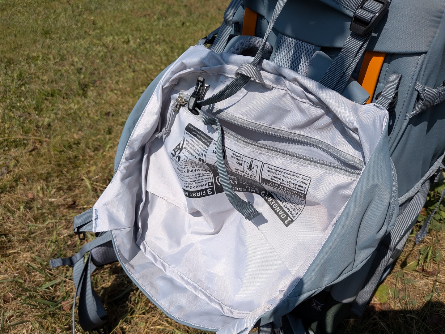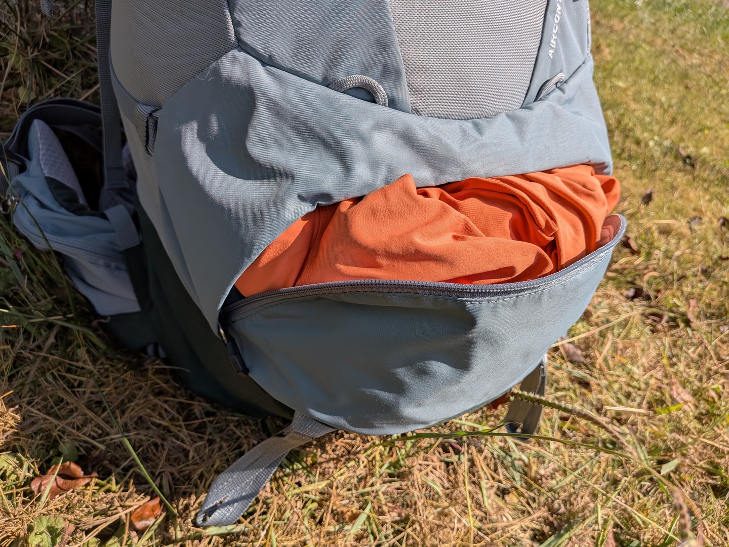 Organization on the core is fantastic. I really enjoyed having a dedicated sleeping bag (or tent) compartment on the bottom, accessible via an external zipper. All of my smaller items all had a convenient, easy to access location. Light layers in the stretchy pouch on the back, water in the pockets, essentials in the lid, and things I really didn’t want to lose hid away nicely in the hidden pocket in the lid. Everything else of course was just stuffed into the main compartment or strapped to the outside of the pack.