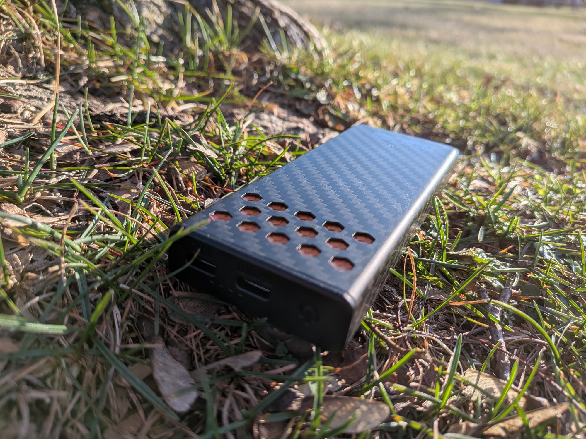 The CARBO 10,000 is designed to be an ultra-light, tough, portable power source. It is constructed from a carbon fiber shell with magnesium alloy heat sinks for enhanced heat dissipation to allow faster than average charging. It has a 10,000 mAh lithium ion battery cell inside and features two USB C ports (one input and both can output). It is IPX8 rated, weighs just 6 oz (170 grams) and retails for $120.
